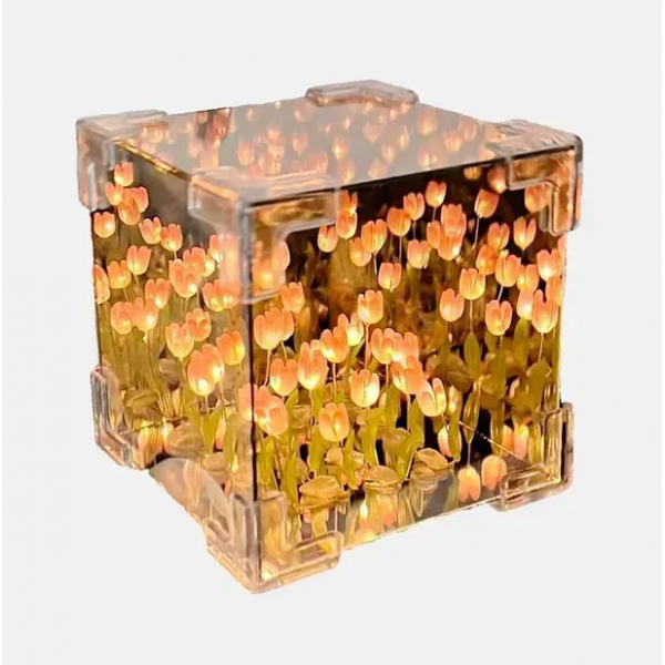Світлодіодний нічник в кубі «Нескінченні тюльпани» умілі ручки — це предмет, який одразу привертає увагу грою світла та глибини. Прозорий куб створює ілюзію безмежного квіткового простору: десятки світлових тюльпанів ніби йдуть углиб, відбиваючись у дзеркальних стінках. Тепле м’яке світіння не засліплює, а формує затишну атмосферу, що доречно виглядає як у спальні, так і у вітальні. Формат «зроби сам» додає особливого характеру — процес складання перетворюється на неспішне заняття, після якого річ сприймається зовсім інакше, ніж готовий декор.
