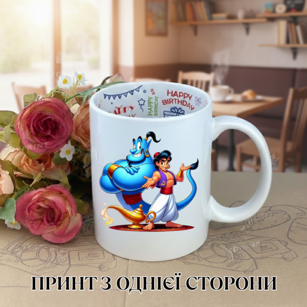 Кружка Аладдін Aladdin з принтом керамічна чашка з написом всередині «Happy Birthday» 330 мл