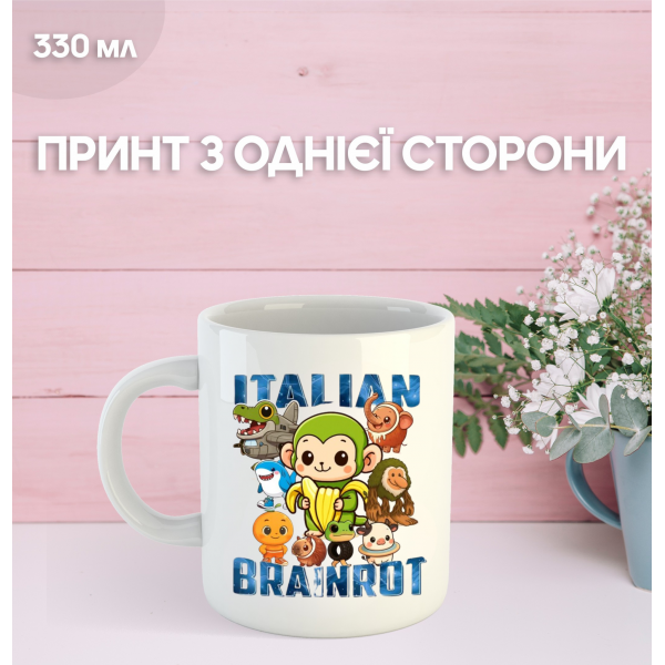 Кружка італійський брейнрот мем з принтом керамічна чашка 330 мл