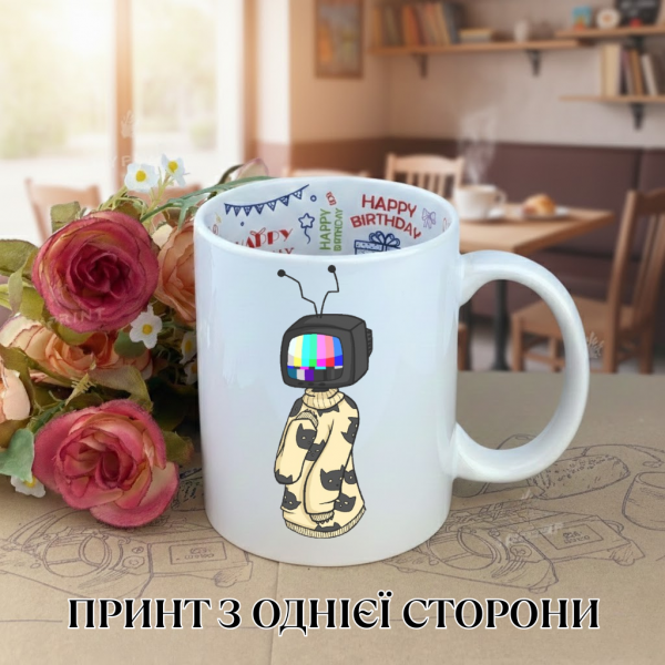 • Приховане вітання: На внутрішньому дні чашки нанесено яскравий напис "Happy Birthday". Це створює ефект приємної несподіванки, коли напій у чашці закінчується.