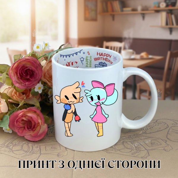 Кружка У Світі Денді Roblox Dandy's World з принтом керамічна чашка з написом всередині «Happy Birthday» 330 мл