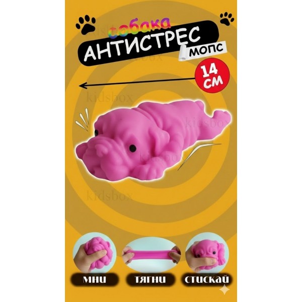 Игрушка антистресс сквиш Мопс малиновый/ розово-красный игрушка тянучка антистресс собачка 14*7,5 см
