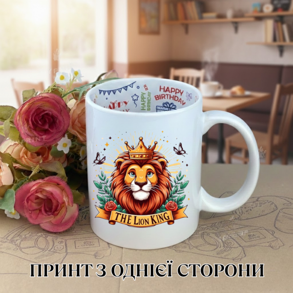 Купити Кружка Король лев The Lion King з принтом керамічна чашка з написом всередині «Happy Birthday» 330 мл за ціною 295 грн. від виробника