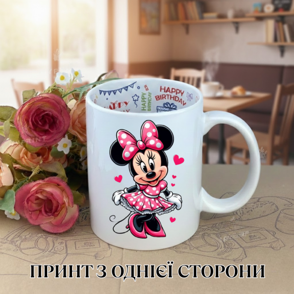 Кружка Мікі Маус Mickey Mouse з принтом керамічна чашка з написом всередині «Happy Birthday» 330 мл